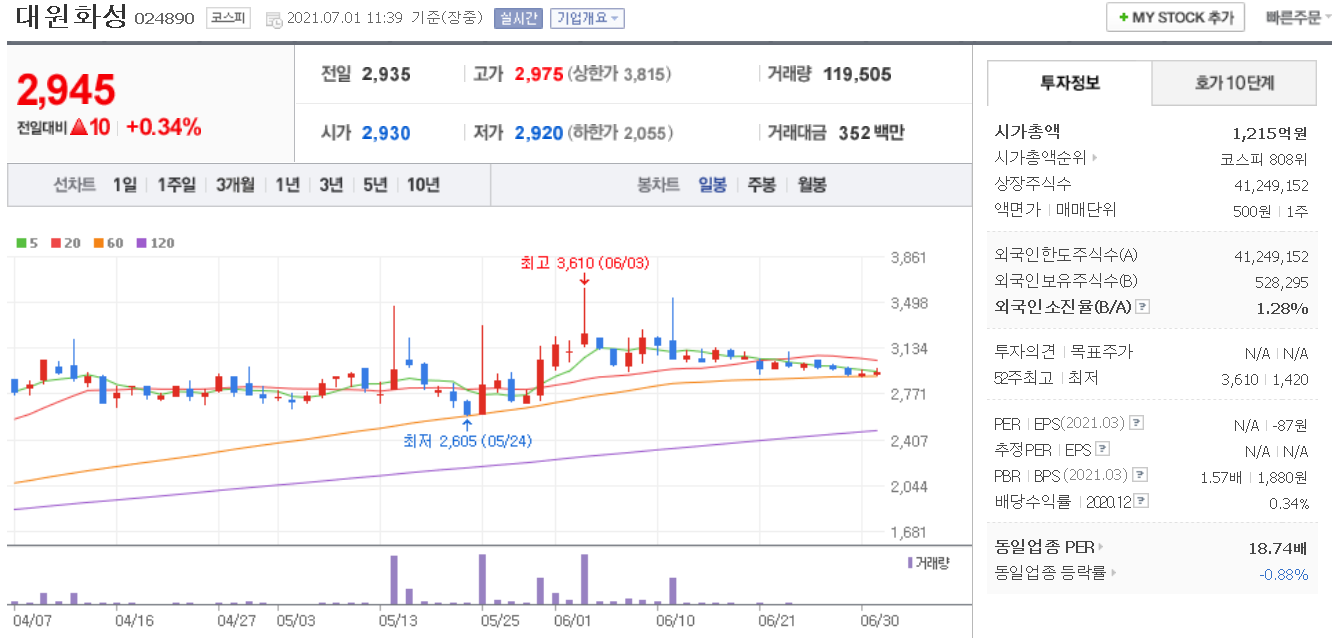 피드백 : 다행이 3% 이상 수익률을 얻긴 했지만, 차트도 제대로 안보고 들어간 종목이었다. 다음부터는 꼭 차트와 수급을 확인하고 들어가자. 그리고 급등주는 언제나 조심하자..!