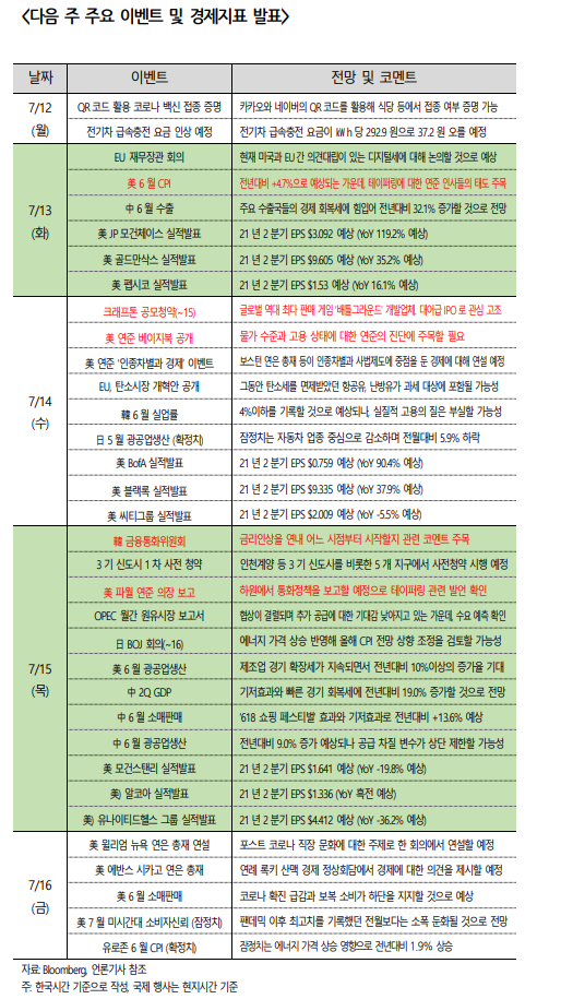 | 다음주 주식투자 전망 (21년 7월 5일 ~ 7월 9일) (0) | 2021.07.03 |