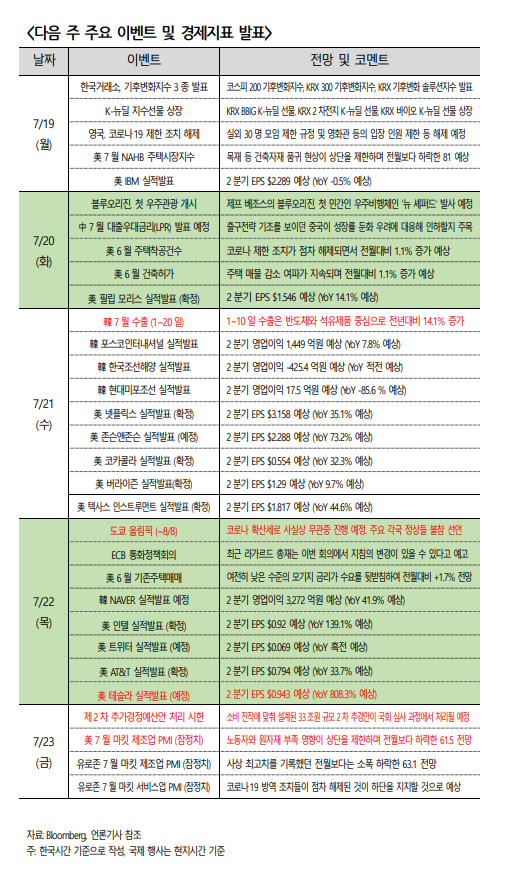다음주에는 포스코와 현대차 그룹의 2분기 실적발표가 예상되어 있다! 긍정적인 실적을 기대하고 있는 상황.